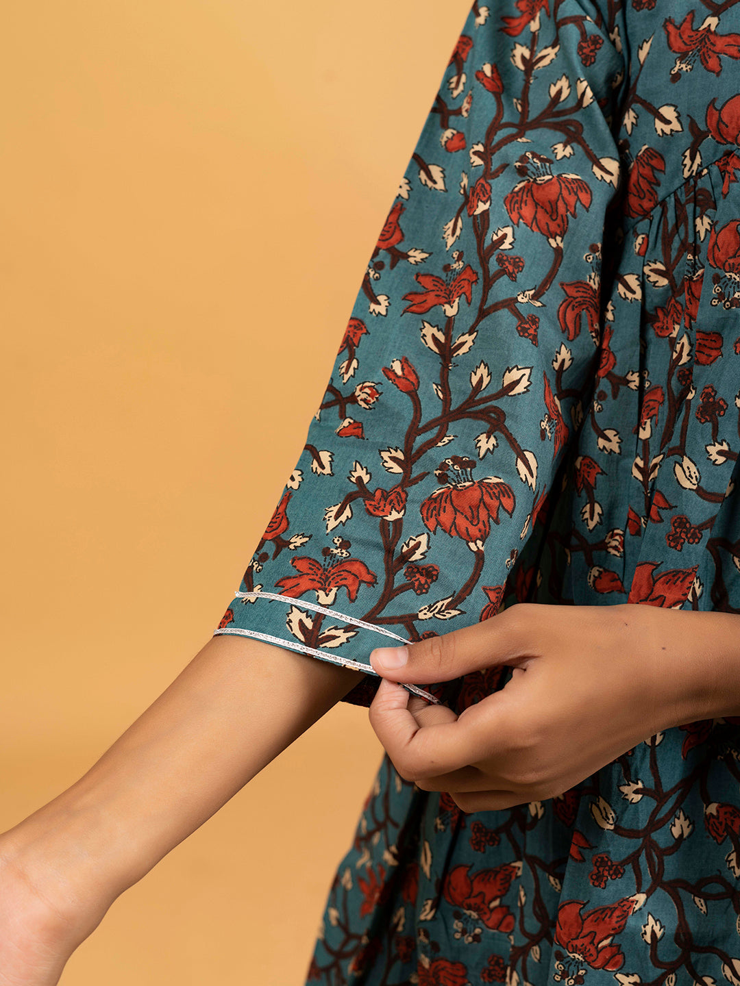 The rich teal hue and captivating prints make it ideal for festive gatherings or casual outings. Sizes range from 3-4 years to 11-12 years.