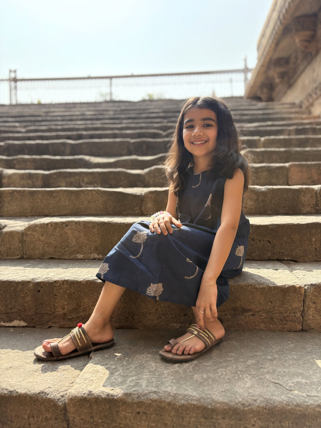 Let your little one shine with elegance in this Navy Blue Printed A-Line Sleeveless Cotton Dress. Designed with playful prints and a breezy A-line silhouette, this dress is perfect for every occasion, from birthday parties to casual outings.